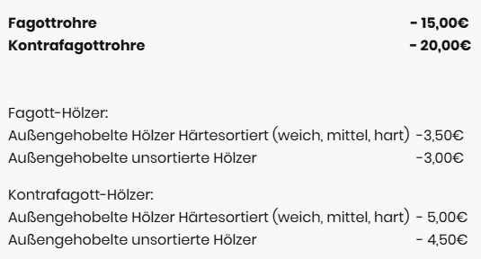 Unsere Fagott- und Kontrafagottrohre sind frei spielbar und haben einen dunklen, runden Klang.